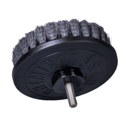 Cepillo de dureza alta para acoplar al taladro, facilita el trabajo. Indicado para la limpieza de alfombrillas y moqueta.